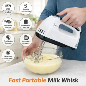 Fast Portable Milk Whisk – powerful hand mixer for quick and smooth mixing. Perfect for coffee, eggs, and cream with easy one-button control and lightweight design.